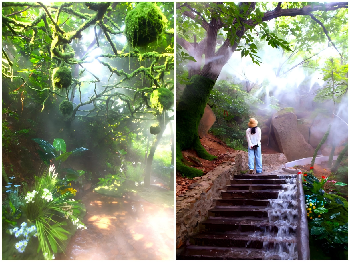 “綠樹陰濃夏日長”,九仙山孫臏書院打造出綠野仙蹤的清涼秘境,用滿目蒼翠撫平燥熱,用山野清風洗滌疲憊。如夢似幻的童話森林,撐起了一片清涼的庇護所,光穿過霧氣,折射出夢幻光影,仿佛闖入武俠劇里的“隱世仙境”,氛圍感拉滿!出片率100%的場景布置,吸引了大批年輕游客前來打卡拍照。