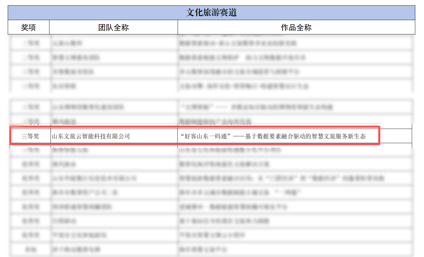近日,2025年“數(shù)據(jù)要素×”大賽山東分賽決賽在濟(jì)南成功舉辦。山東文旅云智能科技有限公司參賽團(tuán)隊(duì)?wèi){借作品《好客山東一碼通——基于數(shù)據(jù)要素融合驅(qū)動的智慧文旅服務(wù)新生態(tài)》,榮獲文化旅游賽道三等獎。