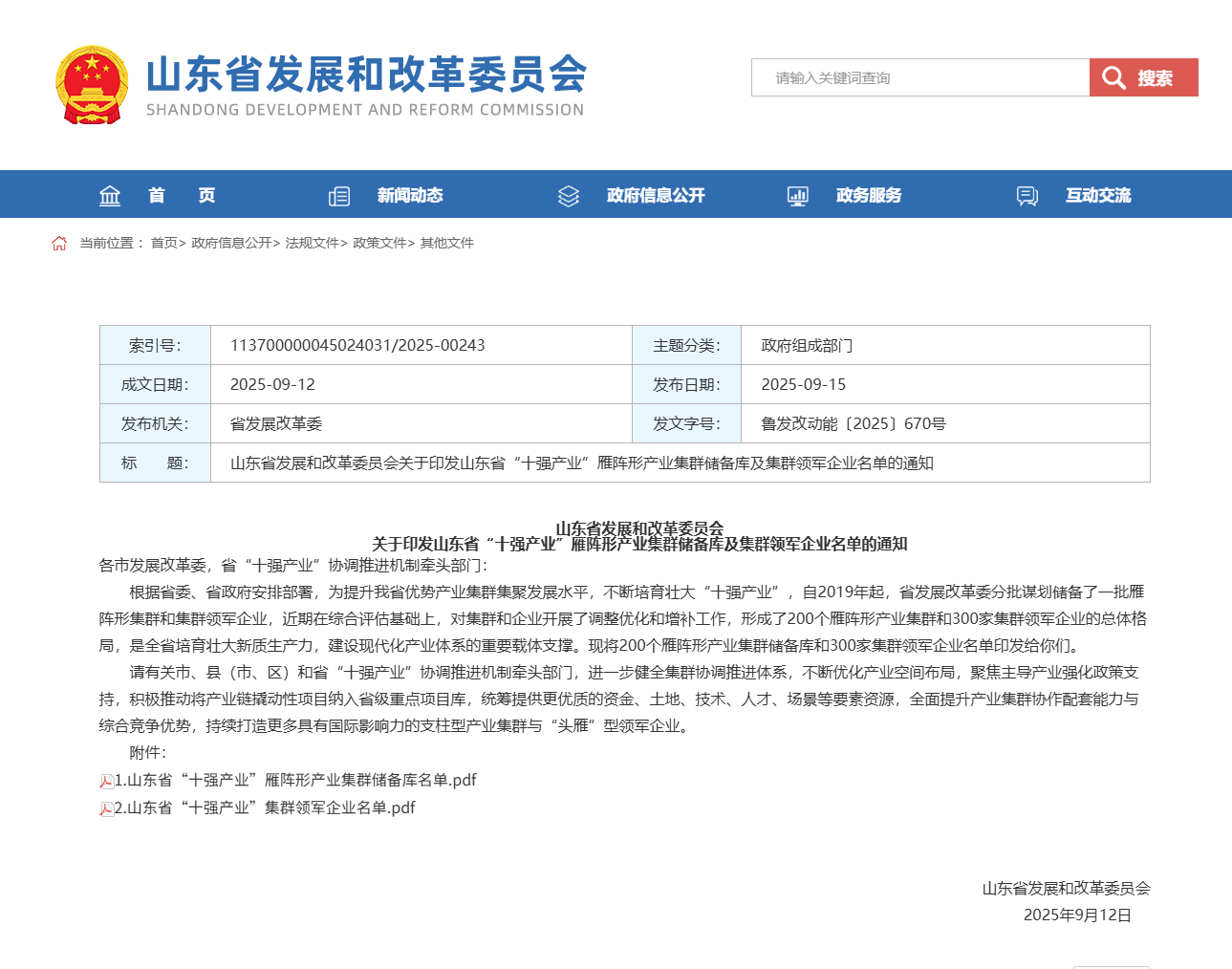 “十強產(chǎn)業(yè)”涉及山東的主導(dǎo)產(chǎn)業(yè)、優(yōu)勢產(chǎn)業(yè)、潛力產(chǎn)業(yè),代表了先進生產(chǎn)力的發(fā)展方向。圍繞“十強產(chǎn)業(yè)”發(fā)展目標,通過動態(tài)管理、精準篩選,全省逐步構(gòu)建起層次清晰、協(xié)同聯(lián)動的產(chǎn)業(yè)發(fā)展體系,目前形成了200個雁陣形產(chǎn)業(yè)集群和300家集群領(lǐng)軍企業(yè)的總體格局,是全省培育壯大新質(zhì)生產(chǎn)力,建設(shè)現(xiàn)代化產(chǎn)業(yè)體系的重要載體支撐。