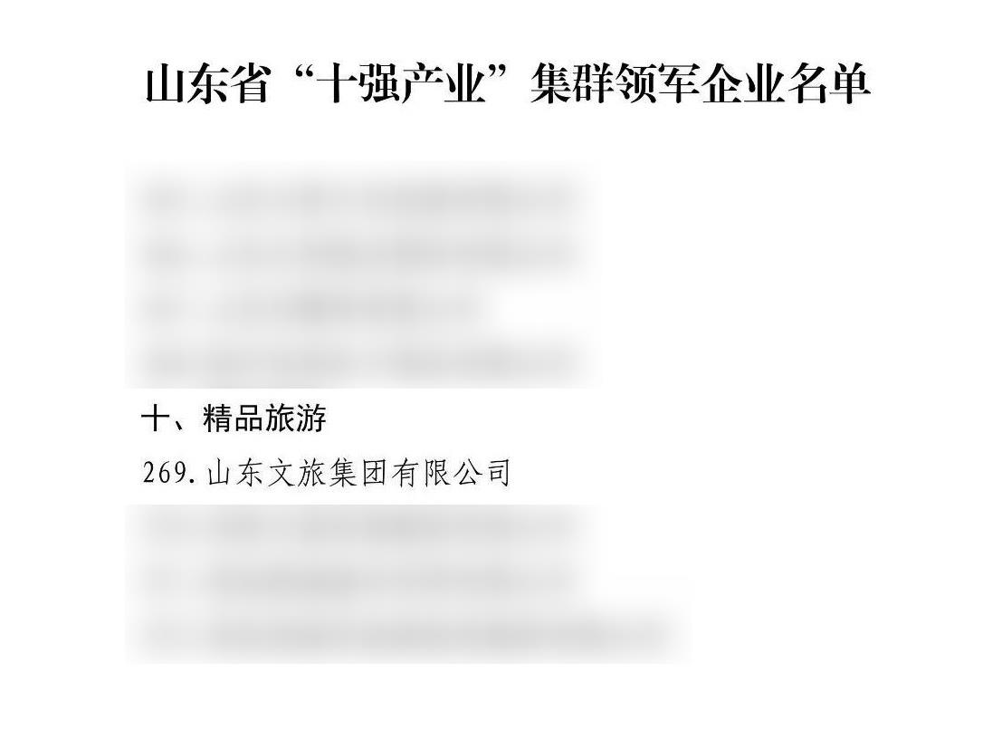 近日,山東省發(fā)展和改革委員會印發(fā)了“十強產(chǎn)業(yè)”雁陣形產(chǎn)業(yè)集群儲備庫及集群領(lǐng)軍企業(yè)名單,山東文旅集團成功入選精品旅游產(chǎn)業(yè)集群領(lǐng)軍企業(yè)。