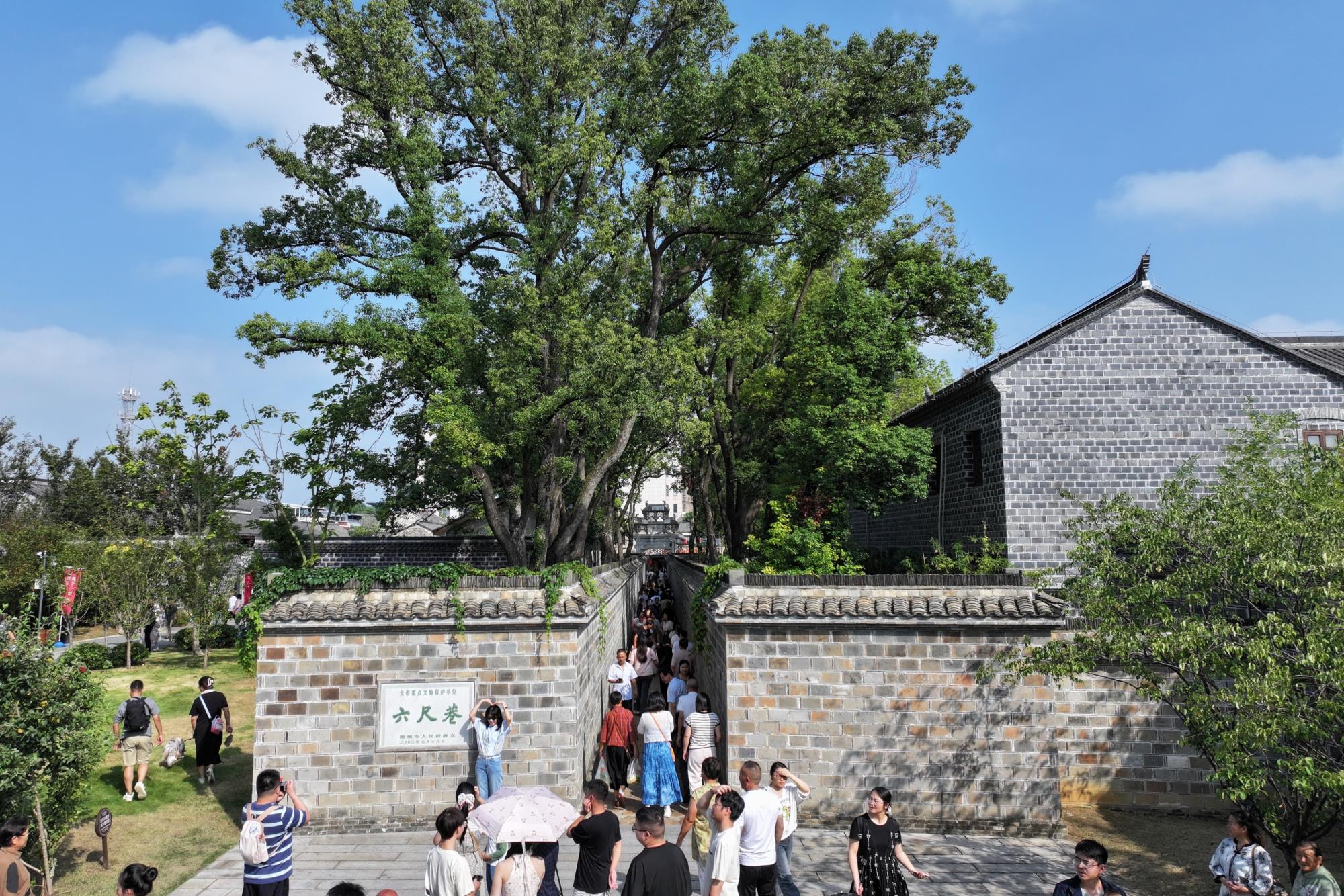 如今的六尺巷,國(guó)慶期間“紅歌嘹亮慶國(guó)慶,國(guó)風(fēng)雅韻賀中秋”主題活動(dòng)吸引超12萬(wàn)人次參與,巷內(nèi)紅旗飄揚(yáng)、游客笑意盈盈,這份“中國(guó)紅”不僅是節(jié)日盛裝,更是桐城以文化鑄魂、以創(chuàng)新賦能的發(fā)展底色。