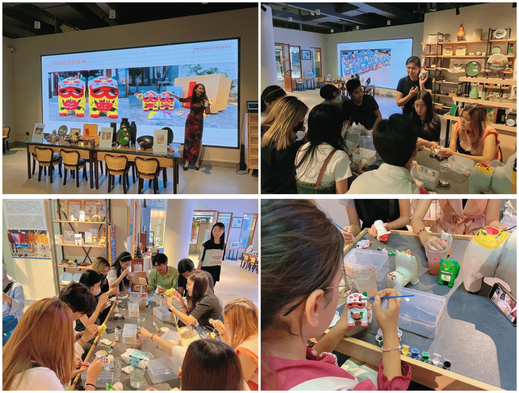 最后留學(xué)生們來到濟南府體驗?zāi)嘟谢⒗L制項目。這是山東最與眾不同的非遺泥塑,是濰坊高密的特色民間藝術(shù)品?!斑@只泥老虎肚子里有個哨子,將頭部和尾部一推一拉,能發(fā)出嗚嗚的叫聲,所以也稱泥叫虎?!痹谘袑W(xué)導(dǎo)師的講解中,留學(xué)生們也慢慢理解了這項非遺技藝的神奇。大家拿起手中的畫筆和顏料,繪制屬于自己的泥叫虎,也寄托了保佑平安、避免災(zāi)邪的美好期待。